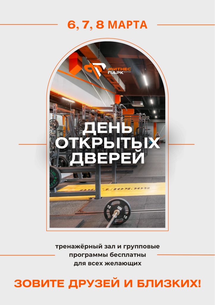 Приглашаем всех желающих на День открытых дверей в Фитнес Парк Восток, который пройдет 6, 7 и 8 марта.